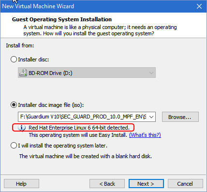 Guardium 10 now sits on a more current operating system – RHEL 6 (6.5 Santiago as confirmed once booted). We notice this from the VMWare auto OS detection (see below). This may help to make the installation process more reliable and will undoubtedly make the operation of the software more efficient.
