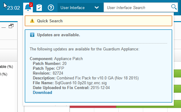 Going back to the notification section, now that Guardium has been licensed, another nice feature is that it checks for any applicable patches and provides the link to Fix Central to download.