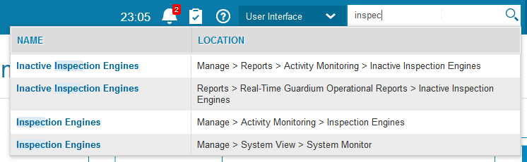 Another strong new feature of V10 is the search bar – this allows quick look up to navigate Guardium, which in my opinion was one of the hardest things to do in the previous versions if not familiar with the product. This search bar can be set to search specific areas of Guardium (Data, File, User Interface) as seen below: