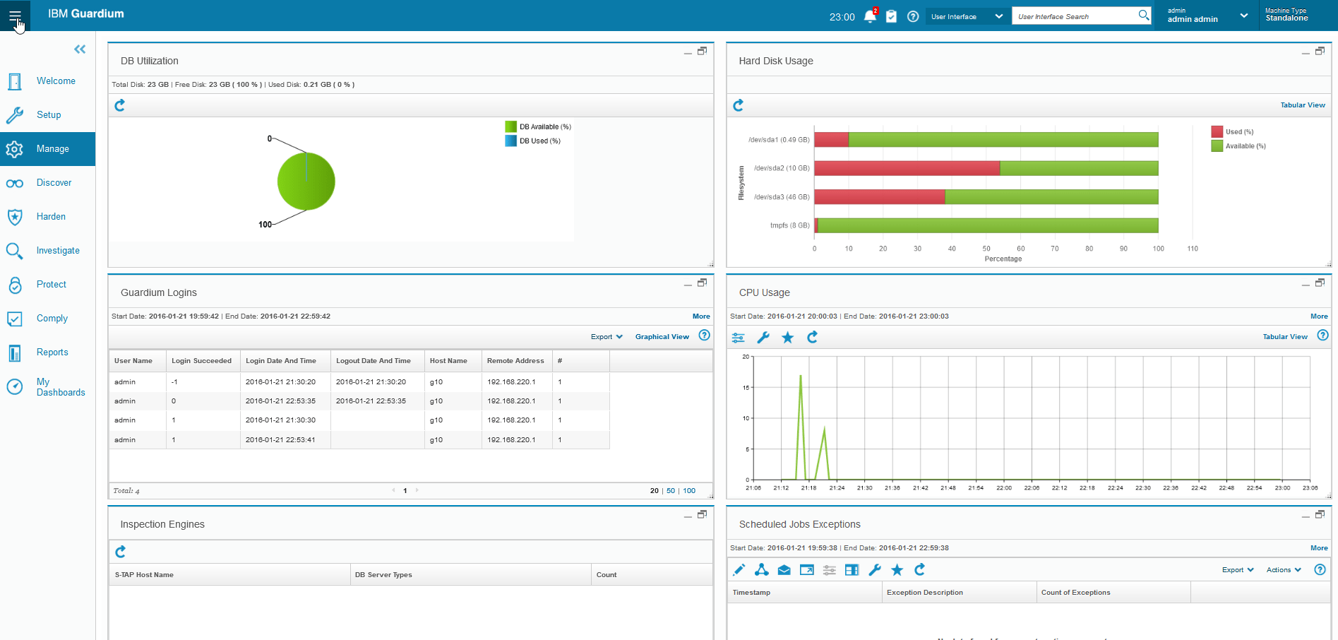 Guardium 10 has a completely redesigned interface and this is a very significant and welcome improvement over previous versions making it easier to navigate the application and find data quickly.