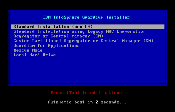 The installation process itself has been simplified. In previous versions of the product, the installation user was required: to specify the installation method (Collector, Aggregator or Central Manager); to specify the type of unit; and to enter the initial passwords for the default Guardium users (cli, admin and accessmgr). In the case of the password entry, we felt this step was actually redundant as the passwords for these users all need to be changed before the environment is configured.
