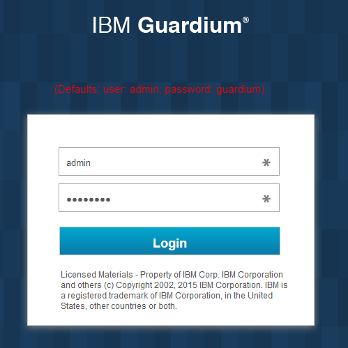 Once verified, it’s time to log into the portal – enter the IP address of your appliance and port 8443: https://your-guardium-ip:8443. Note make sure to use HTTPS.