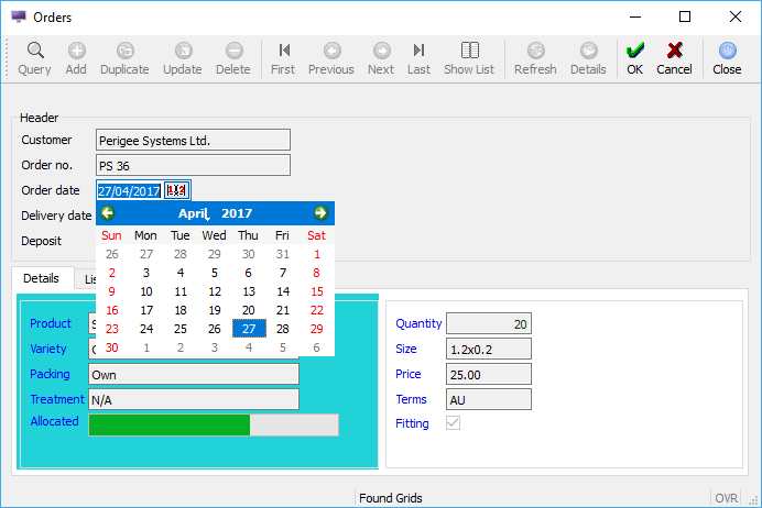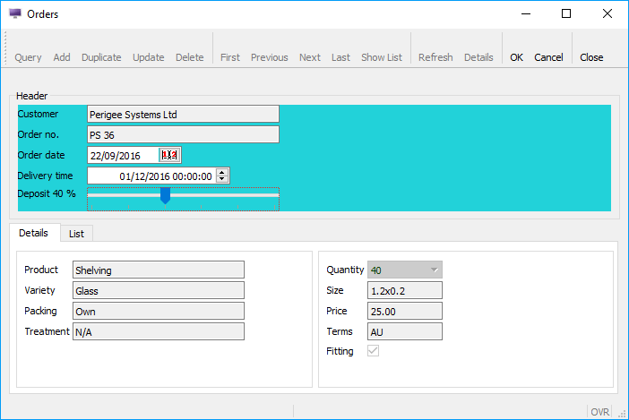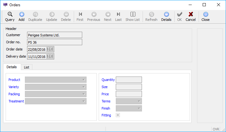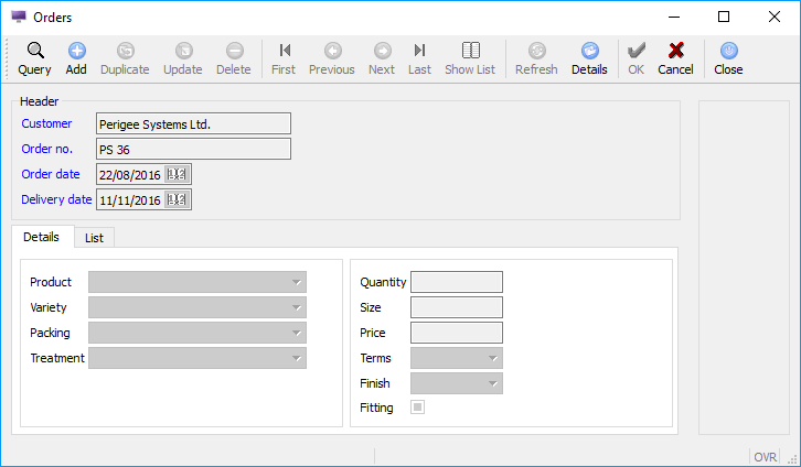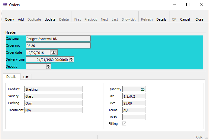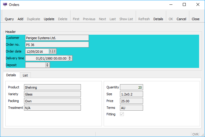 And this functionality can be applied to pretty much every field type, including page, group, grid and such like. So the ‘List’ page (as above) could be made visible only if there is more than one line in the order. If you have 2 tables and nothing else in a grid and you want to hide them both then it would be more practical to hide the grid – fewer lines of code and the screen will be dynamically re-aligned more appropriately.