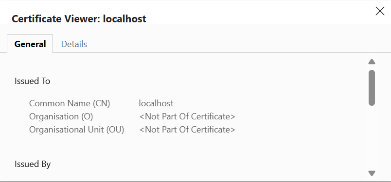 9. Your certificate should be visible as above and you now be able to open the HQ Web GUI without any security warnings:
