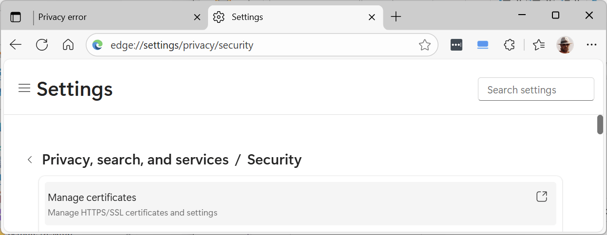 5. Click on “Manage certificates”: