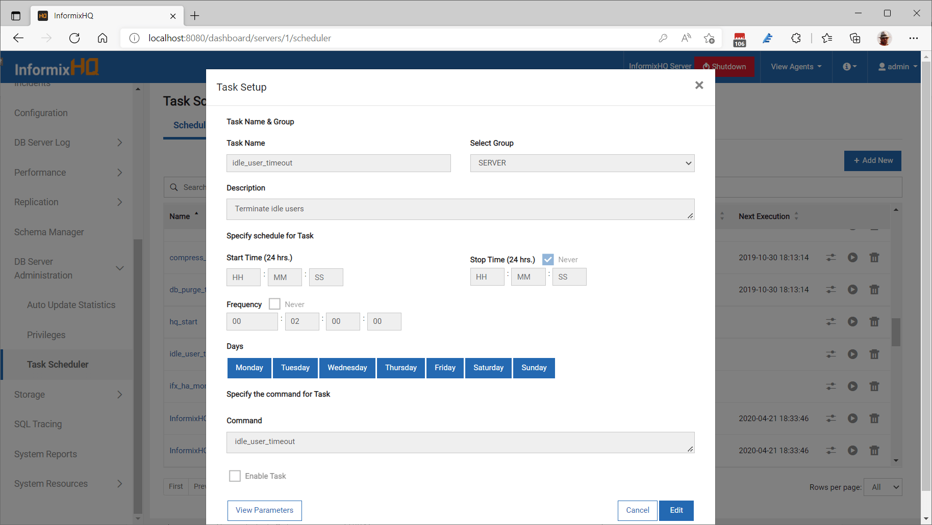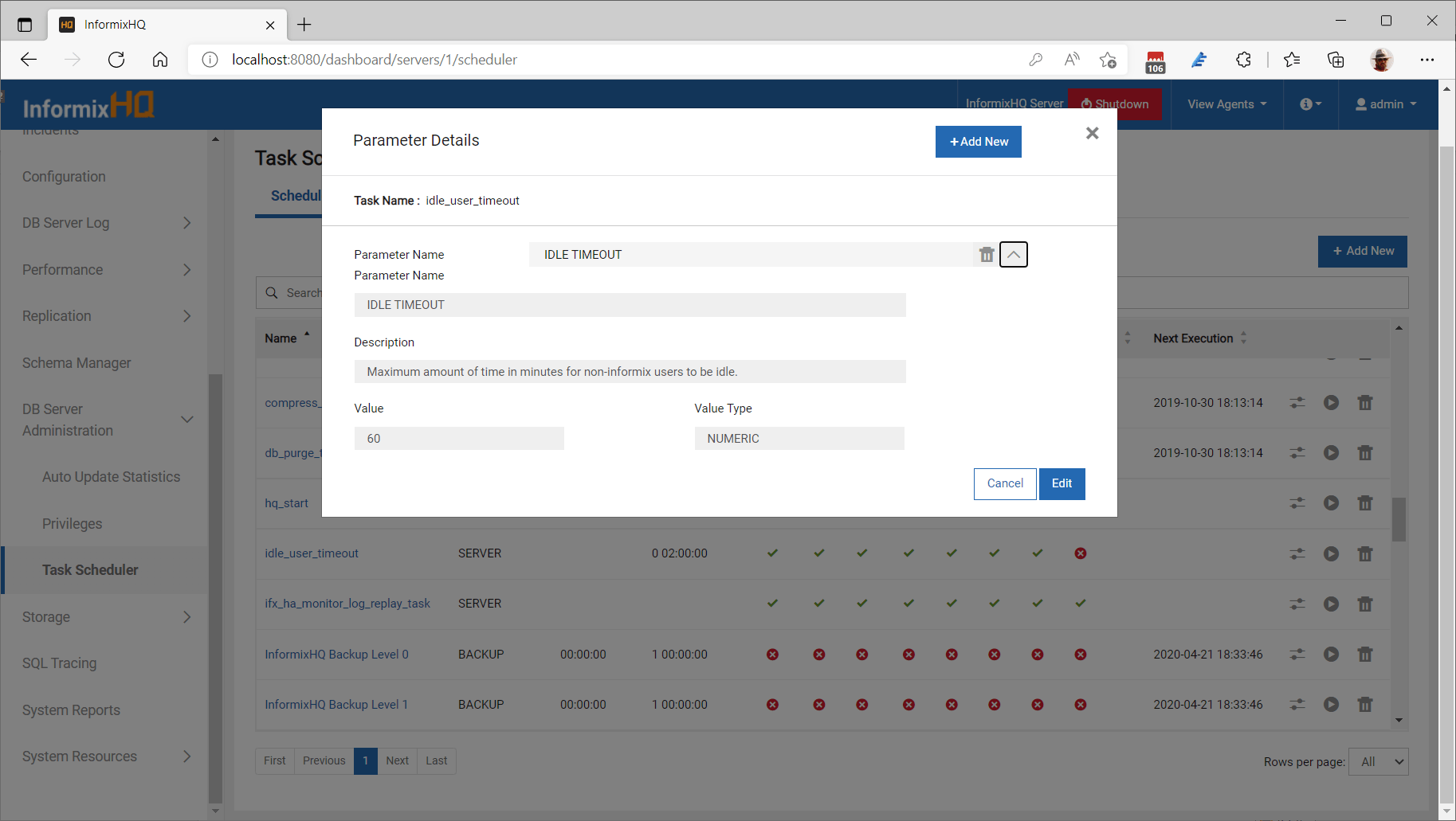 A standard scheduled task “idle_user_timeout” is provided with later versions of IDS which can be configured using Informix HQ: